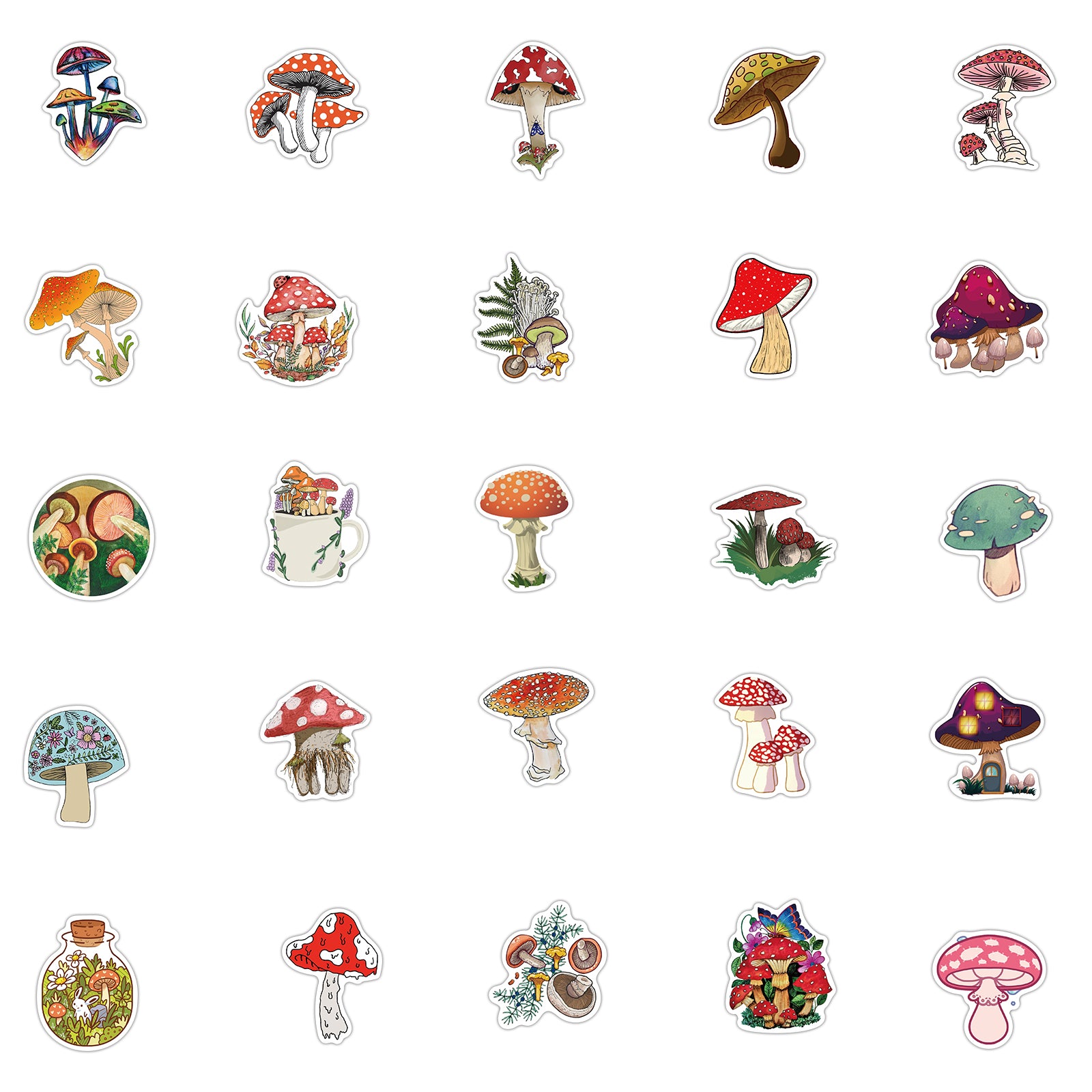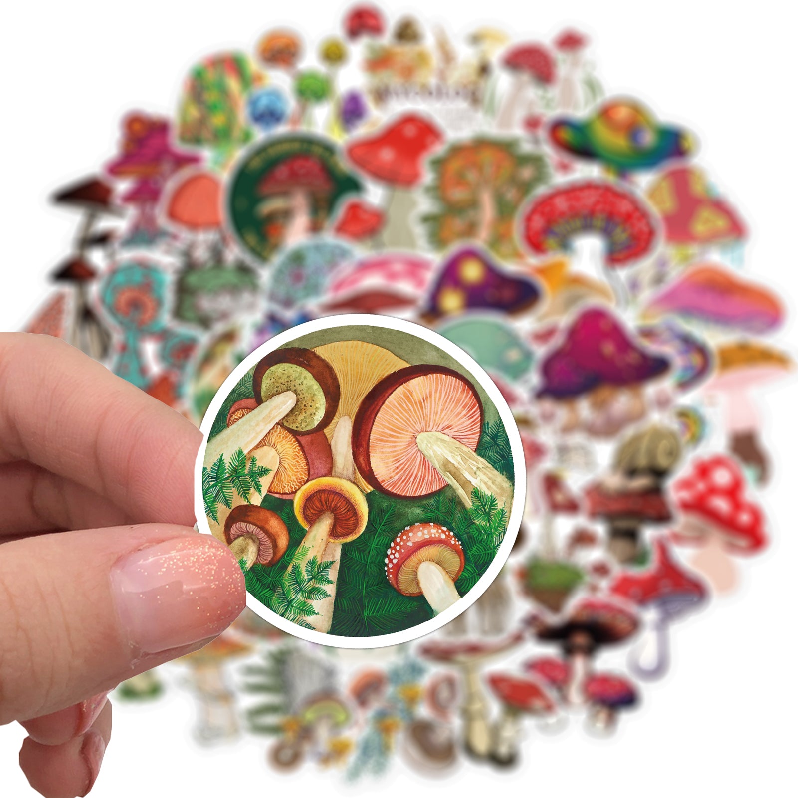 Paddenstoelen Stickers - Trippy Outdoor - set 50 stuks - Laptop Stickers - Stickervellen