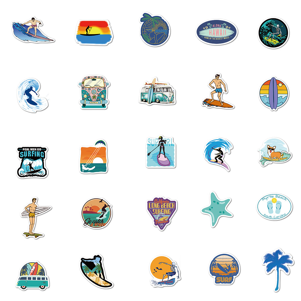 Surfing Stickers - Beach & Summer - set 50 stuks - Laptop Stickers - Stickervellen