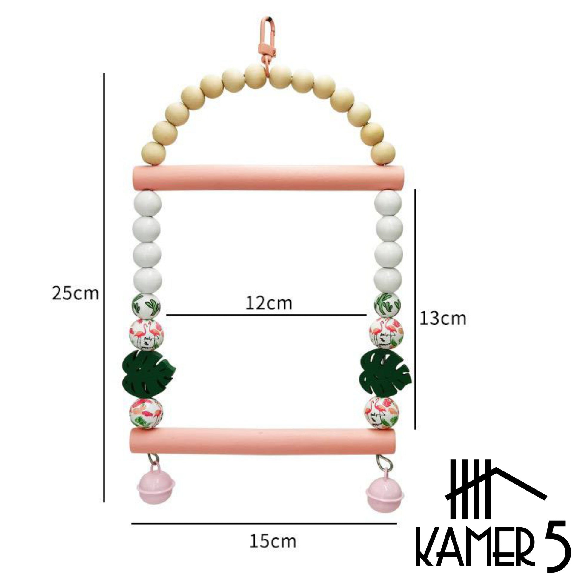 Vogel Schommel Malibu - Hout - Kralen - Belletjes 15 x 25 cm - Vogelkooi - Parkieten Speelgoed - Kanarie