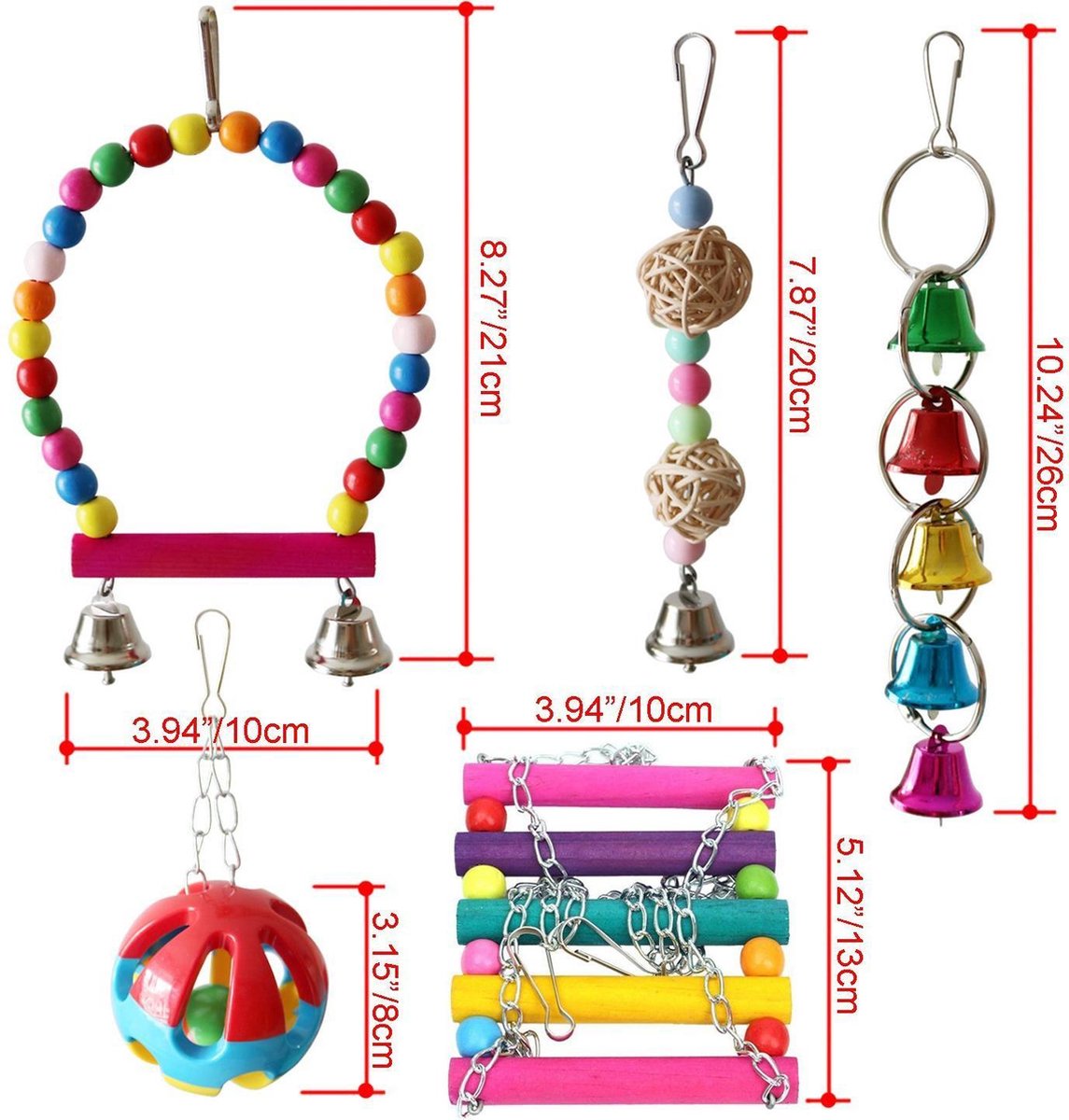 De set heeft verschillende heldere kleuren, onderdelen die geluid maken, onderdelen die kunnen bewegen en die vooral erg leuk zijn om mee te spelen. Hiermee voorziet u de vogel van verschillende sensorische prikkels, waardoor hij zich goed kan vermaken in de kooi.